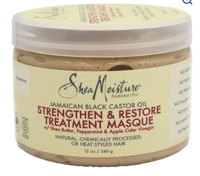 SheaMoisture – Jamaican Black Castor Oil Strengthen & Restore Masque غني بزيت الخروع الجامايكي وزبدة الشيا، يقوي الشعر من الجذور ويقلل التقصف 👌